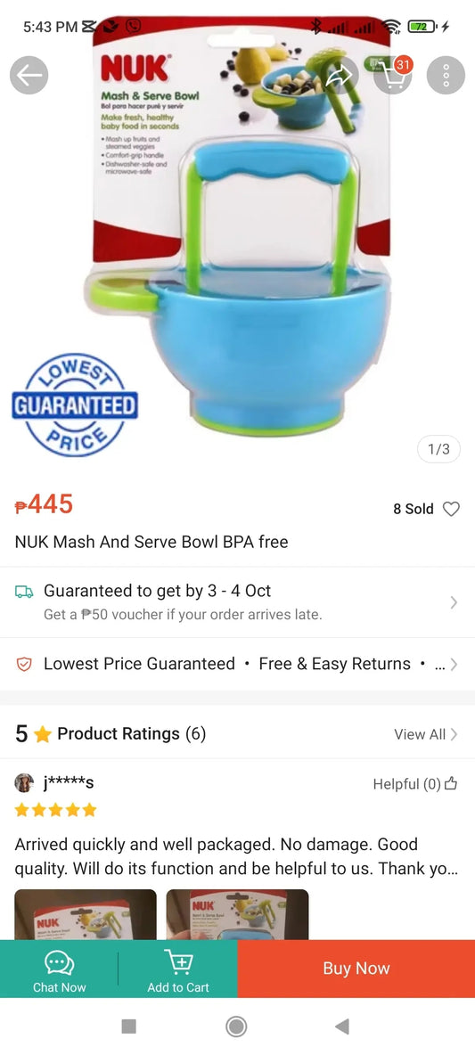Sold out(DHG1) NUK Food Masher and Bowl