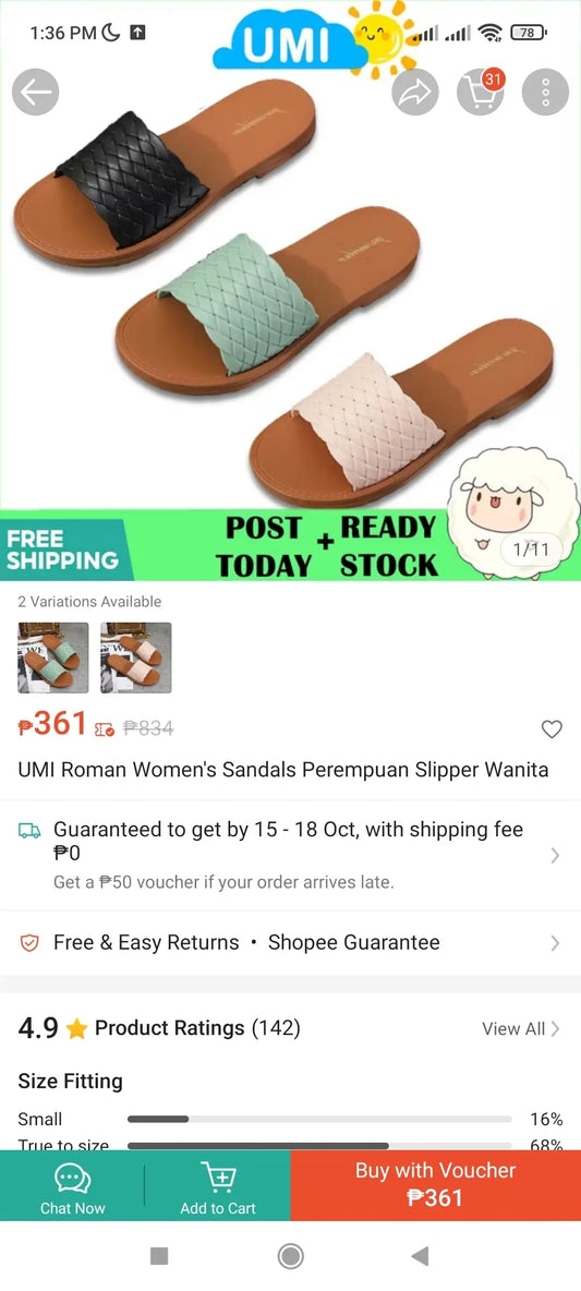 (EJM7) Posee EVA Lightweight Portable Home Slippers PS4301 Size: 35-36