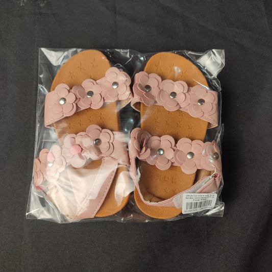(DELGUC)2 Colors Kids Girls Sandals Velcro Back Lace Up Flower Shoes
