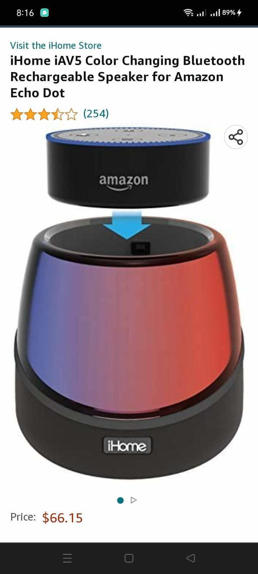 Amazon iHome iAV5 Color Changing Bluetooth Rechargeable Speaker 4 Echo Dot Alexa Accessories