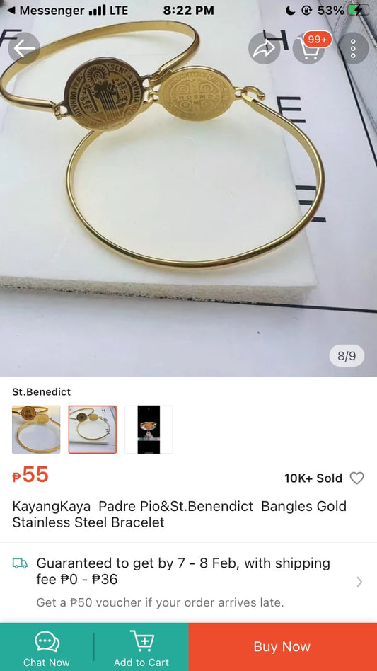 Religious Stainless Steel Gold Bangle Bracelet