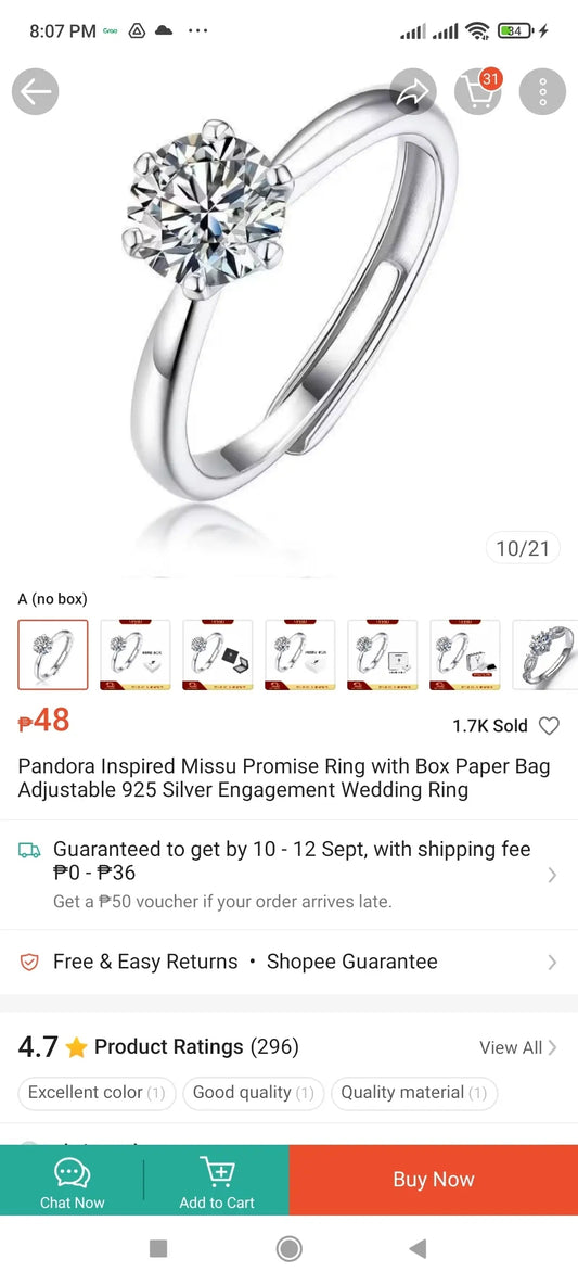 Adjustable Silver Ring for Women (Center Stone 6-Prong Crown Design)