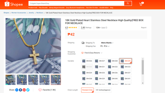 Gold-Plated Staineless Steel Necklace - Pendant Only