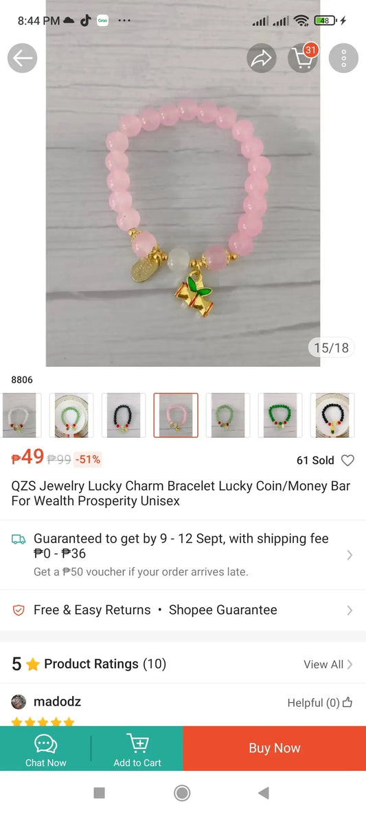 Pink Beaded Lucky Charm Bracelet (Koi Fish Charm) with Color Box