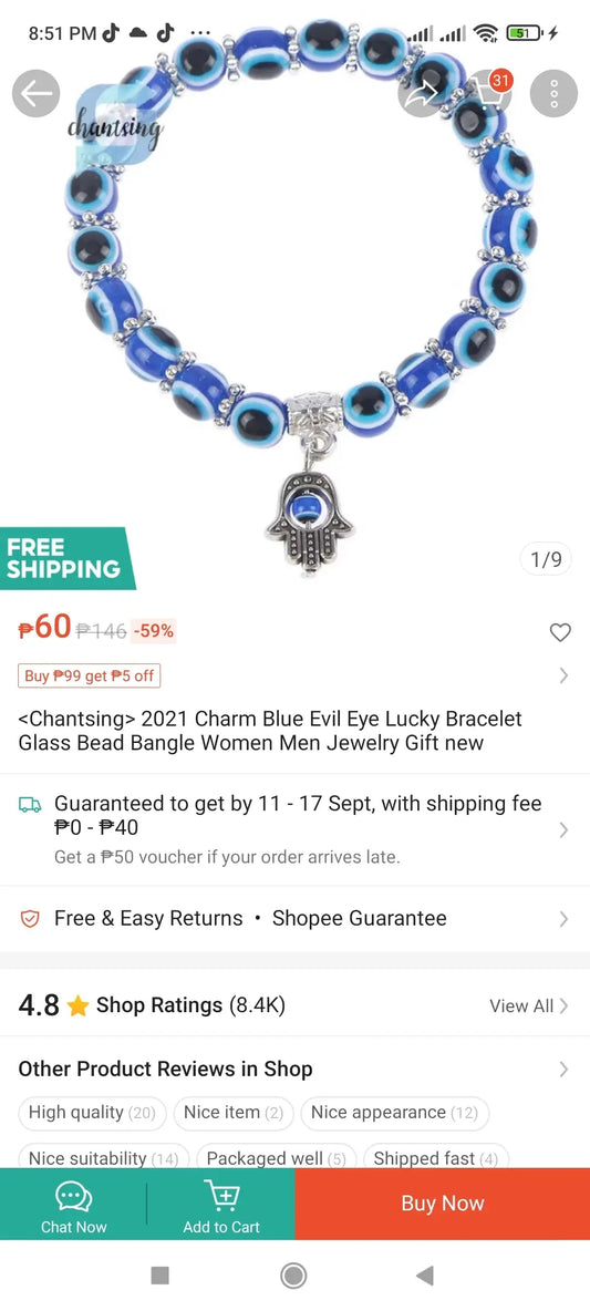 Blue Eye Beaded Lucky Charm Bracelet without Box
