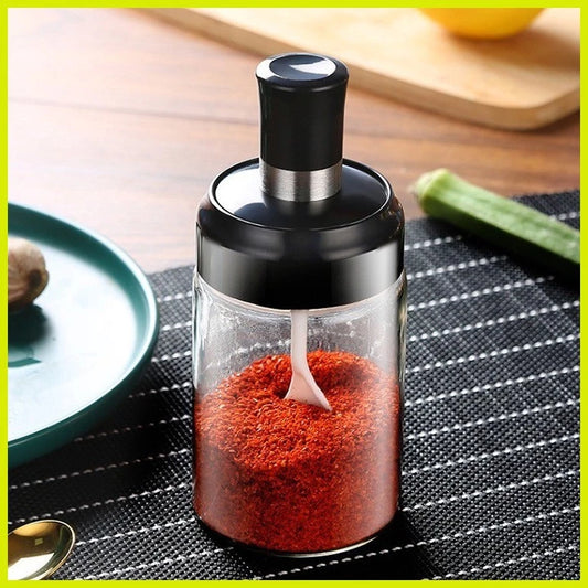 Seasoning Glass Jar with Integrated Spoon and Lid