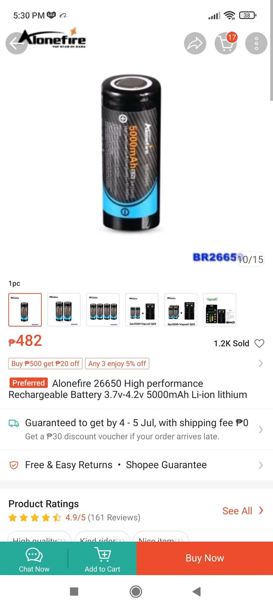 BR26650 Alonefire 5000mAh High Performance Rechargeable Li-on BAttery 3.7V