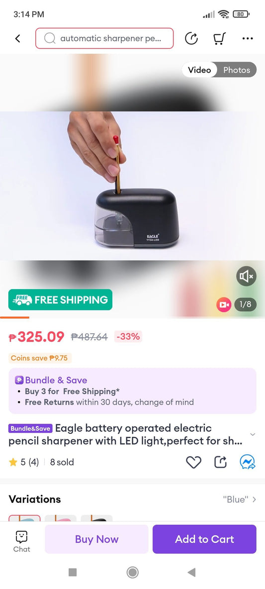 TY34-LED Eagle Led Light Automatic Sharpener - Blue