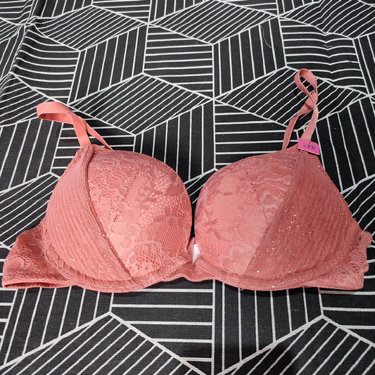 Weili Jiya Lace Bra and Panty - Size: 32B - Peach with Glitters -