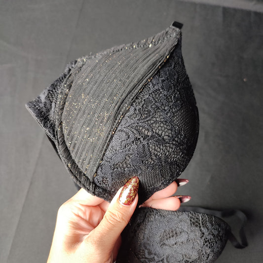 Weili Jiya Lace Bra and Panty - Assorted Size - Black with Glitters -