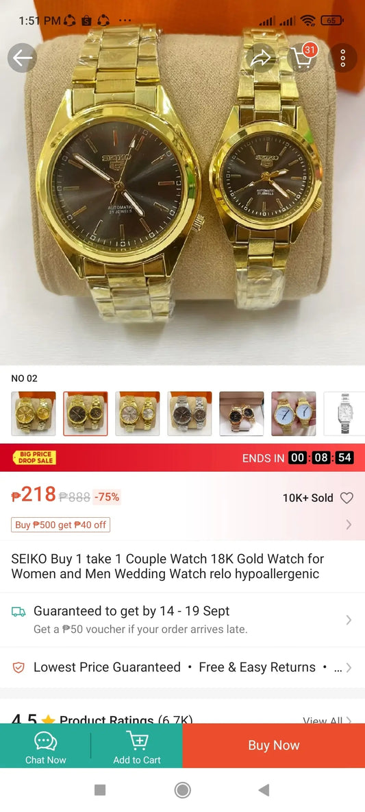 Seiko 5 Gold Analog Couple Watch - White Hand with Quality Box